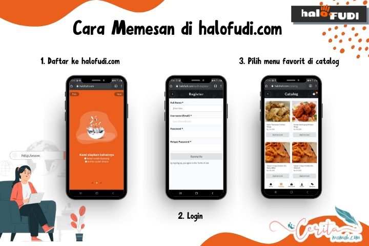 - Buka Halofudi.com dari browser internet smartphone atau computer. Lalu daftar dengan menggunakan email aktif.
