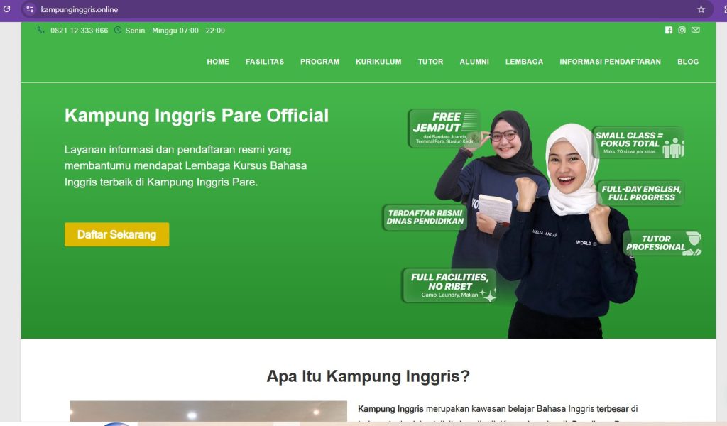 Di tengah pencarian informasi, saya menemukan Kampung Inggris World English melalui situs resminya https://www.kampunginggris.online