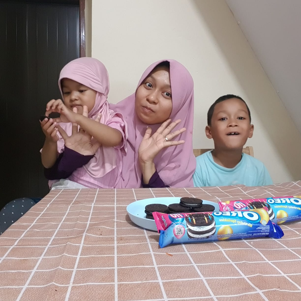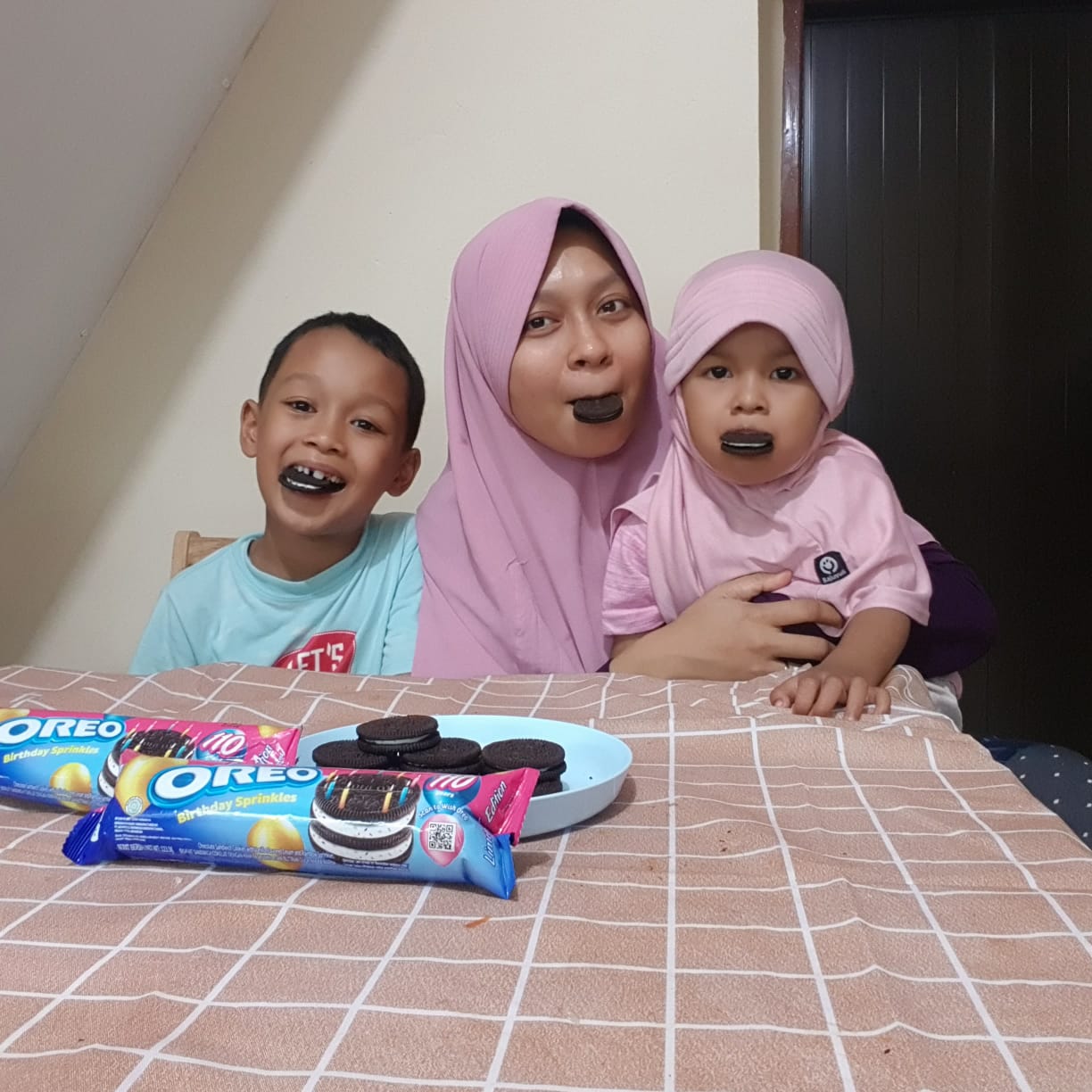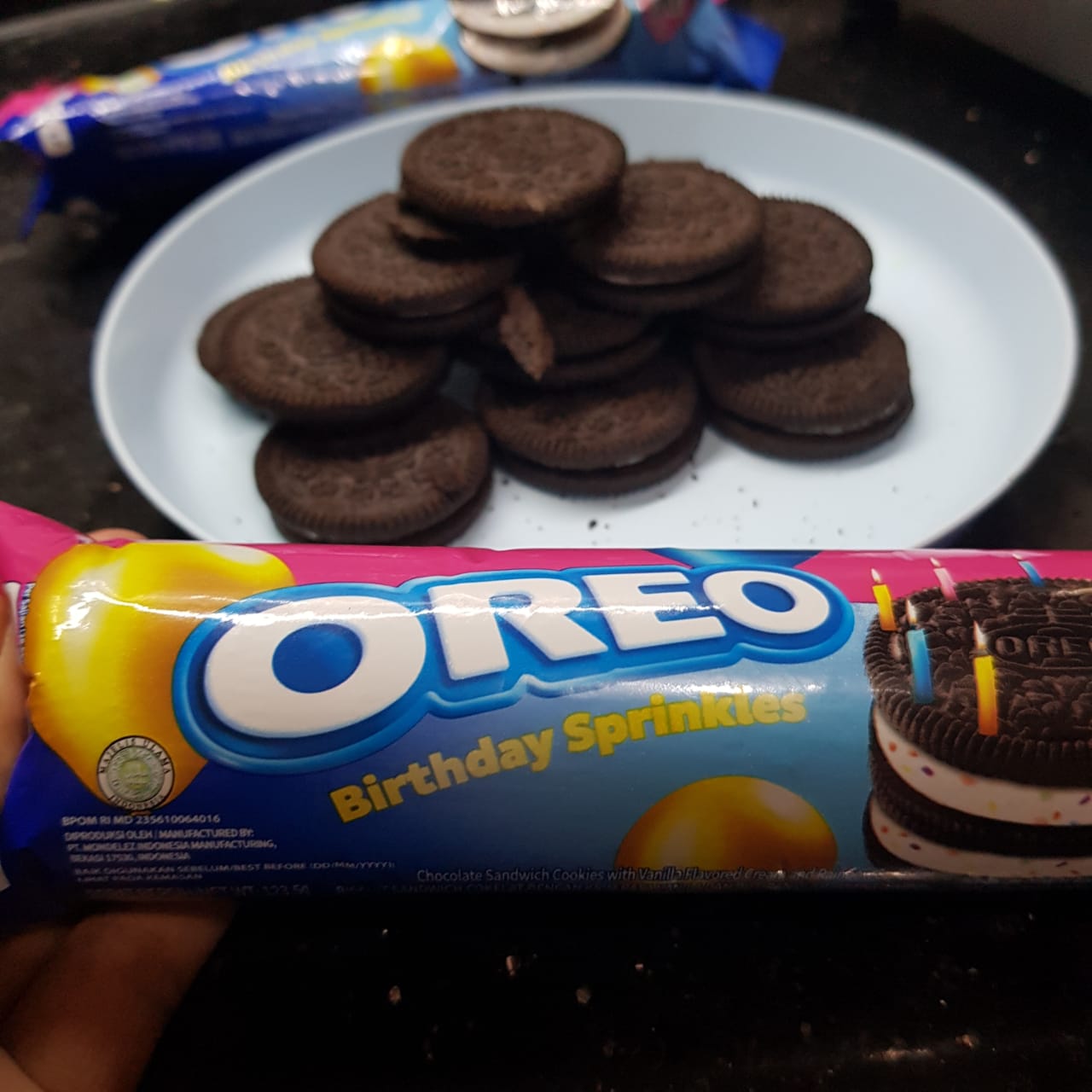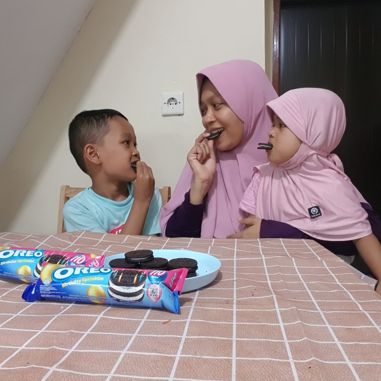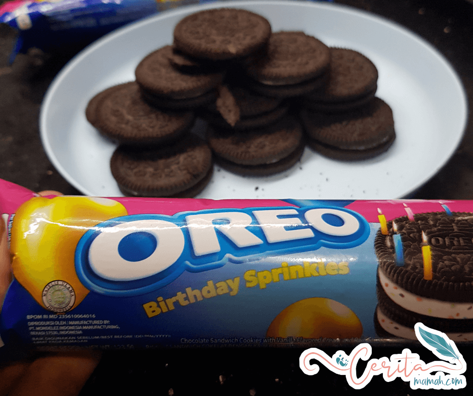 Oreo merupakan camilan yang tidak bisa ditolak anak-anak. Tidak hanya anak-anak dong, kami sebagai orang tua juga menikmatinya. Gigitan pertama biskuit legendaris dengan krim vanilla bertabur sprinkles yang colourful menambah kelezatan dan keceriaan kami bercerita menjelang sore itu. Ini adalah produk terbaru dari oreo yang memiliki cita rasa seperti kue ulang tahun.