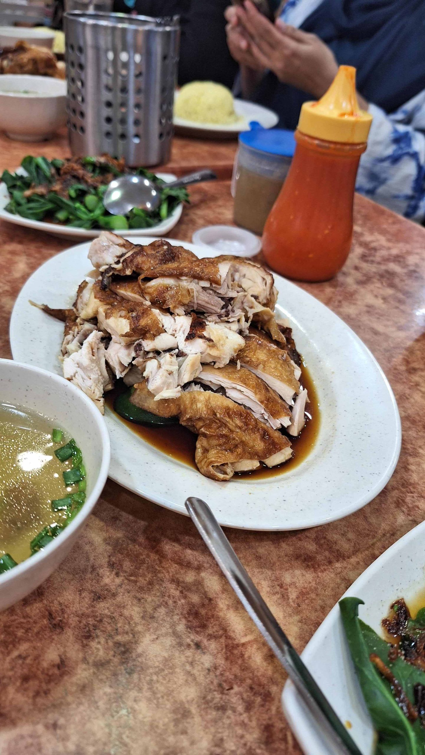 Nasi hainannya rasanya enak tidak terlalu berminyak, ayamnya jelas enak! Kami pesan yang panggang. Kuahnya juga mengingatkanku pada kuah baso, haha. Kami bertujuh memesan 1 ekor ayam panggang, 7 porsi nasi Hainan dan 3 porsi sayur pokcoy/kailan. Total sekitar 210-230 RM detailnya, aku lupa. Termasuk medium ya pricenya, kalau dalam rupiah itu 700 ribuan.