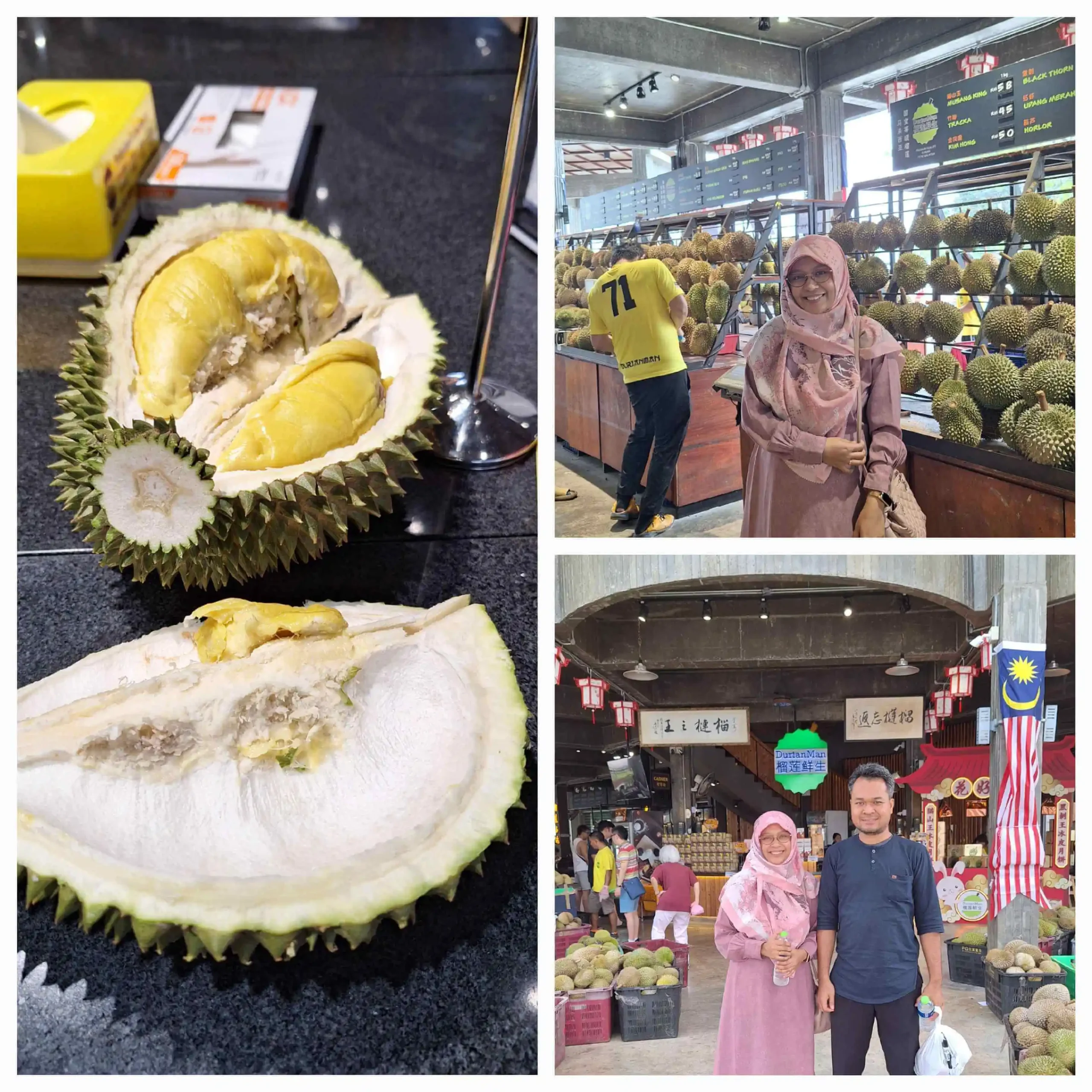 Jadi ternyata suami dan istri adalah teman suamiku. Maklum suamiku golongan introvert, dan jarang jarang bercerita temannya. Karena waktunya masih panjang, kami diajak makan duren atok dalang alias Musang King di Durian Man. Padahal teman suamiku ini ga suke duren! Dan kami baru tahu saat kami mau menyantap ini. Sementara istri dan anak-anaknya di rumah karena jam tidur siang.