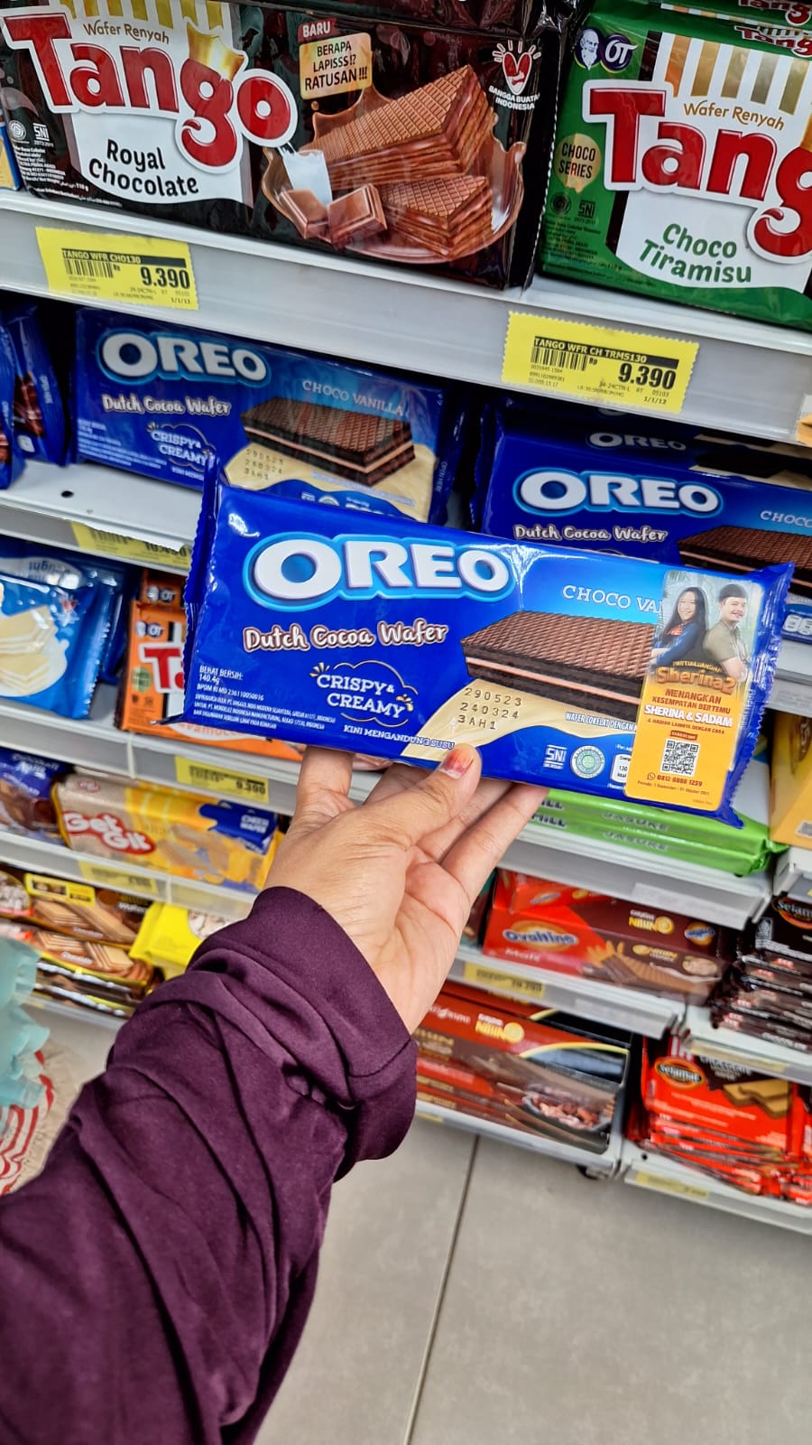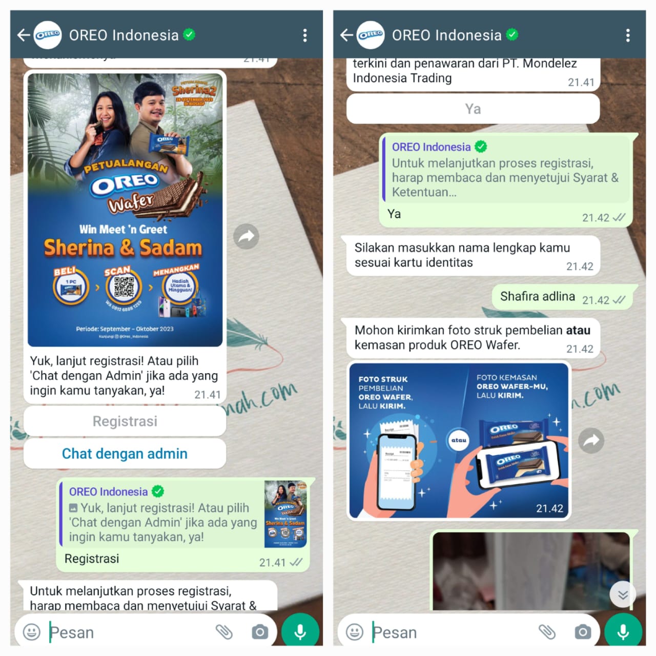 Caranya juga sangat mudah, yaitu dengan membeli Oreo Wafer Varian apa saja yang bertanda stiker Sherina dan Sadam. Lalu kirimkan bukti pembelian atau gambar OREO Wafer ke nomor whatsapp 0812-6888-1259 (atau dengan memindai kode QR pada kemasan) untuk ditukar dengan nomor undian. Semudah itu!!